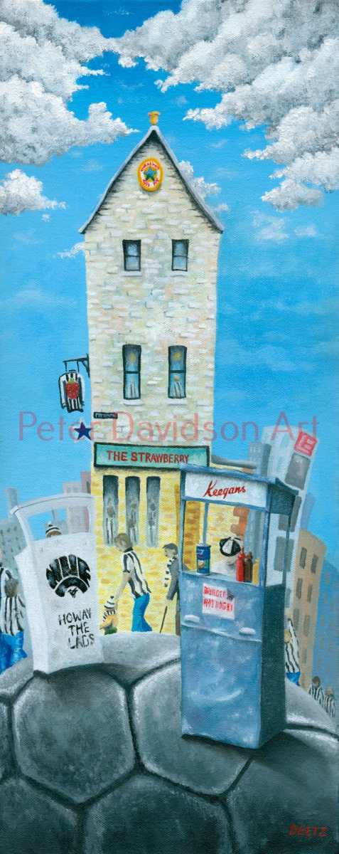 Limited edition signed Giclée print. A quirky take on a match day treat. The cheapest burgers, the cheapest sauce, boiled onions and a dry bread bun. BUT ABSOLTLEY GORGEOUS. A match day must have from just outside the Leazes end and The Strawberry