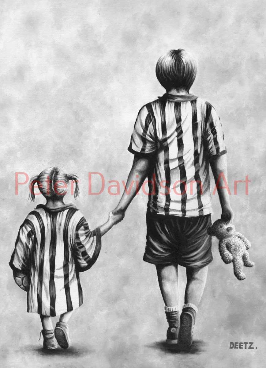 Limited edition signed Giclée print. Brother and sister heading home for tea