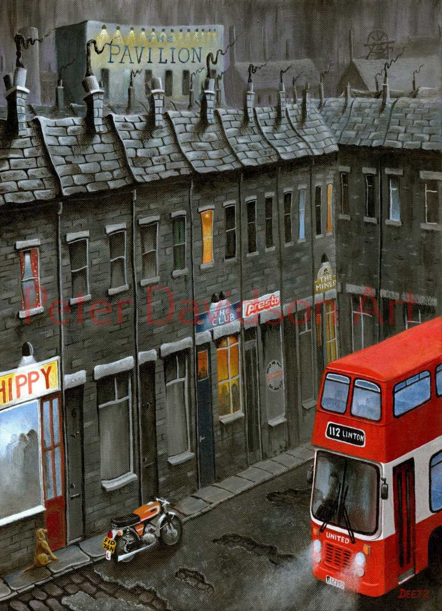 Limited edition signed Giclée print. My first ever motorbike, Yamaha’s iconic FS-1E with the Ashington Piv in the background, where my Mam went to play Bingo (or Hoosy as we called it) on Friday nights