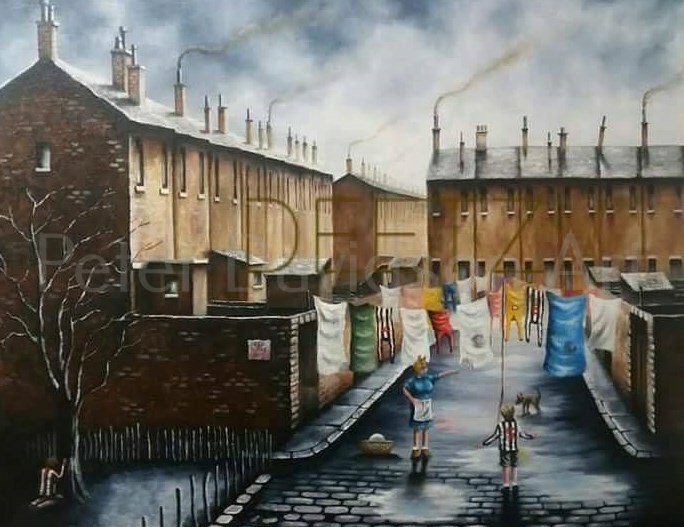 Limited edition signed Giclée print. Monday was always washing day and a bad day for football in the back street