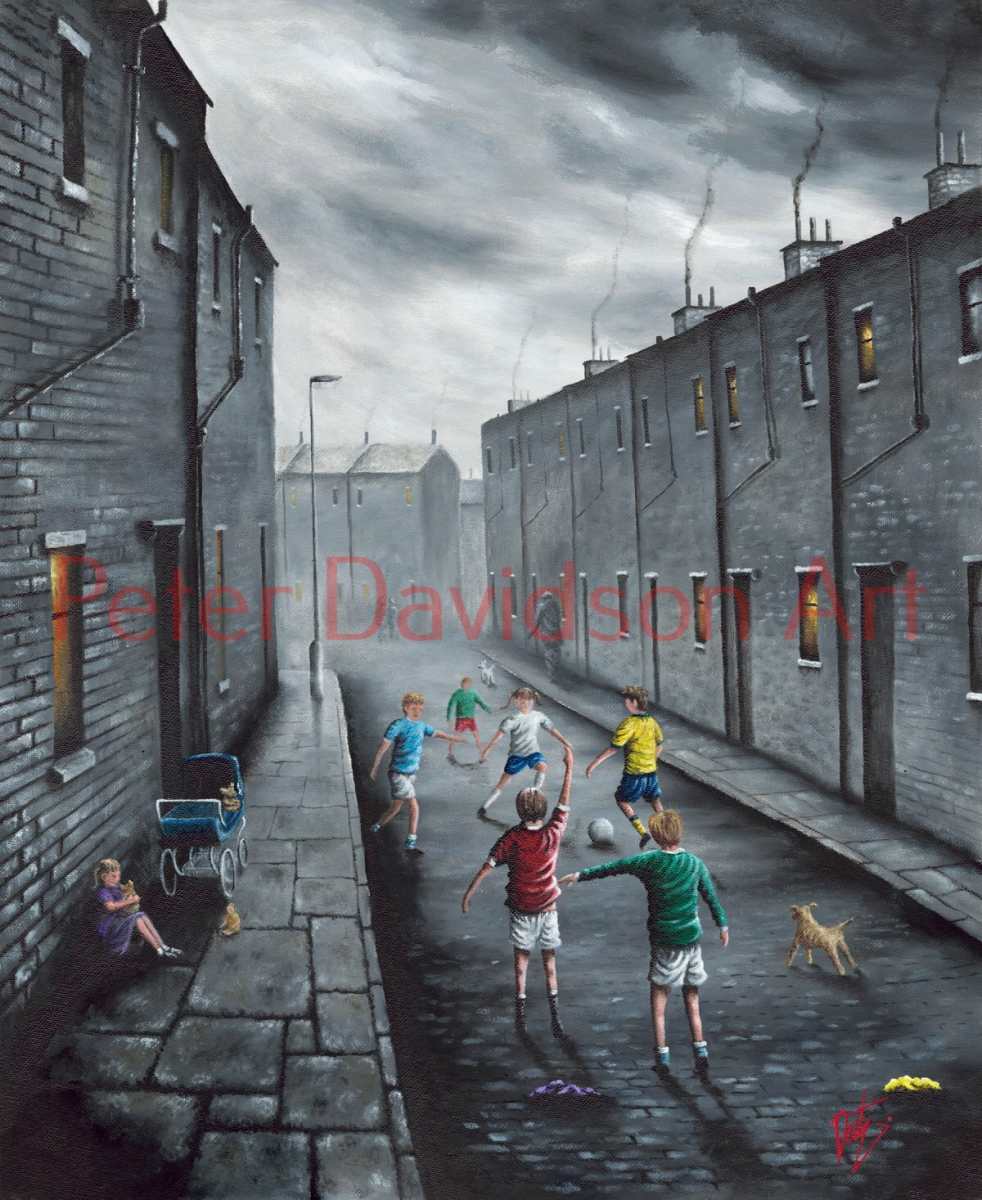 Limited edition signed Giclée print. A cry heard every single time we played football in the back street, every team had a “launcher” and they were never popular!