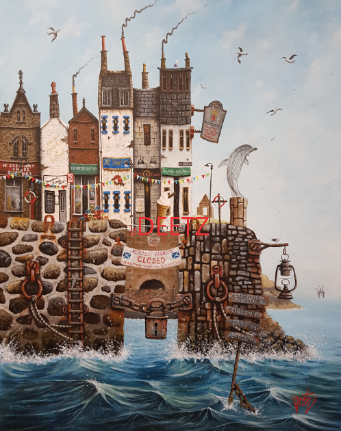 Limited edition signed Giclee print. A playful take on the beautiful Scottish coastal town of Portsoy.