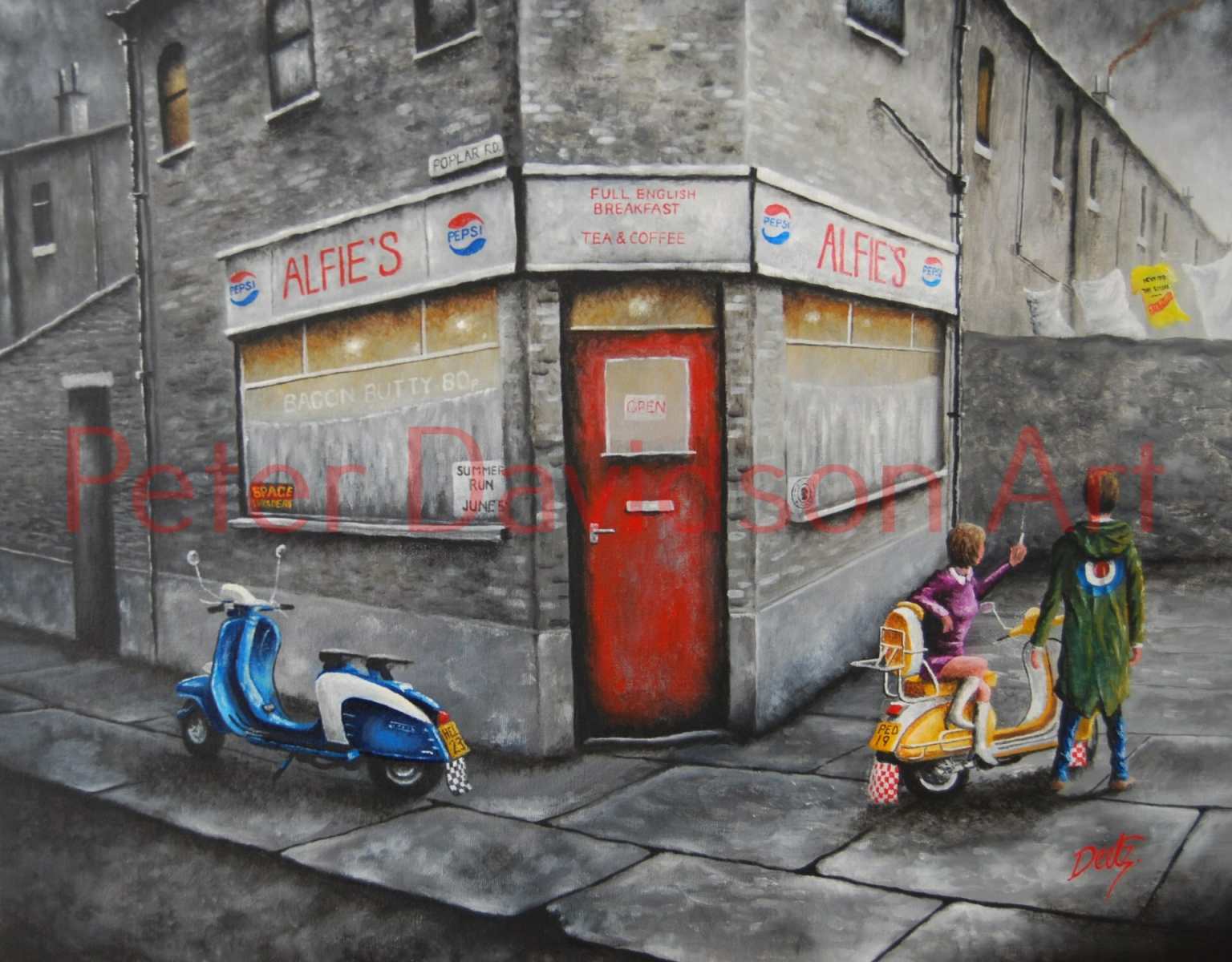 Limited edition singed Giclée print. Punk or Mod! which were you? Either way, we all met at the local greasy spoon.