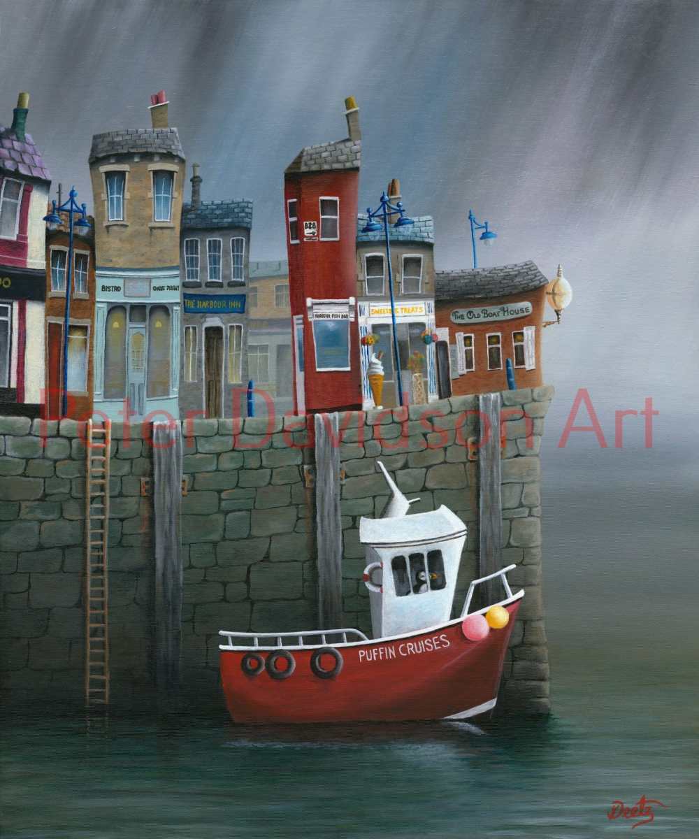 Limited edition signed Giclée print. A quirky take on the award winning Northumberland coastal town of Amble