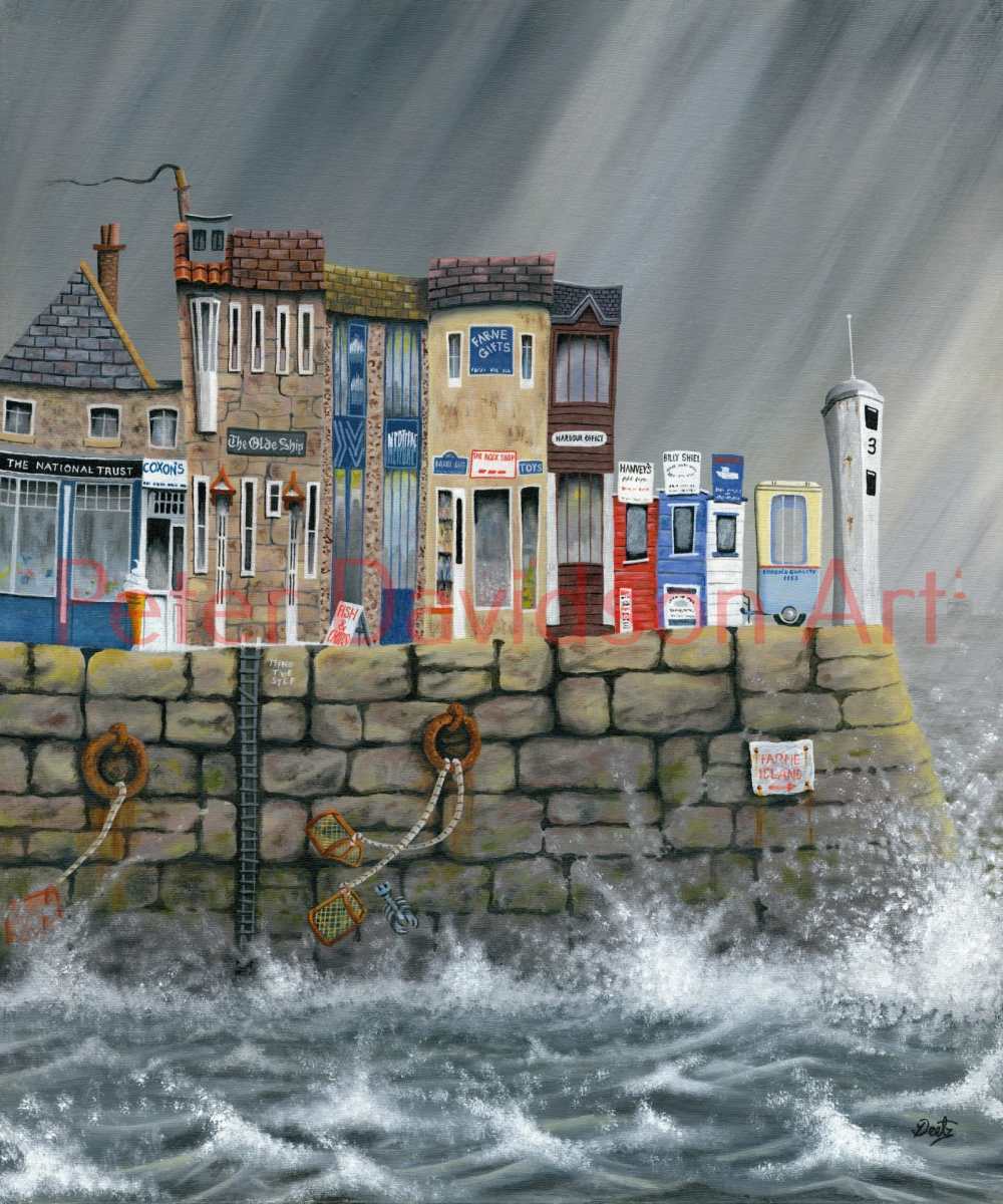 Limited edition signed Giclée print. A quirky take on the North East coastal town of Seahouses in Northumberland