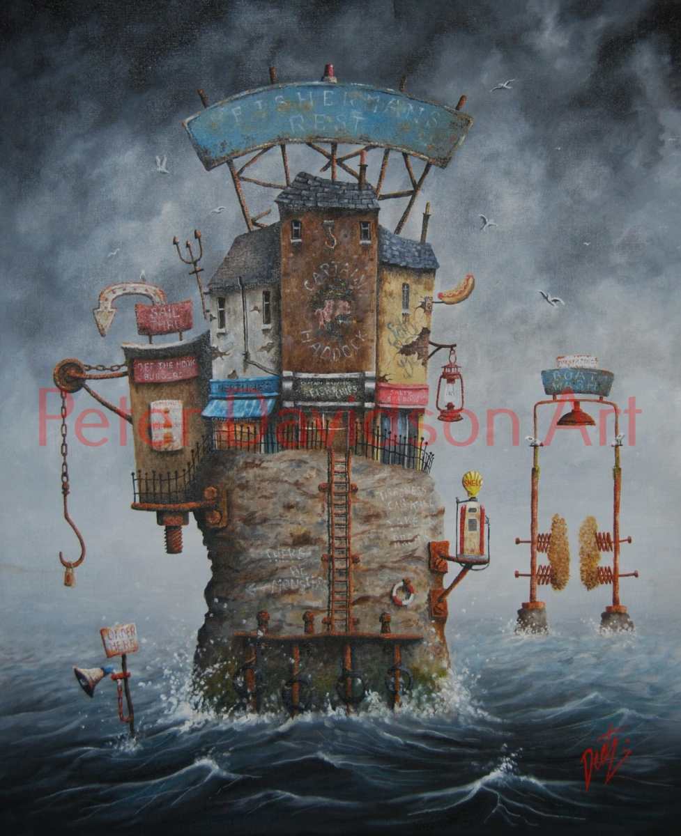 Limited edition signed Giclée print. A humorous take on if the North Sea shipping lanes had service stations